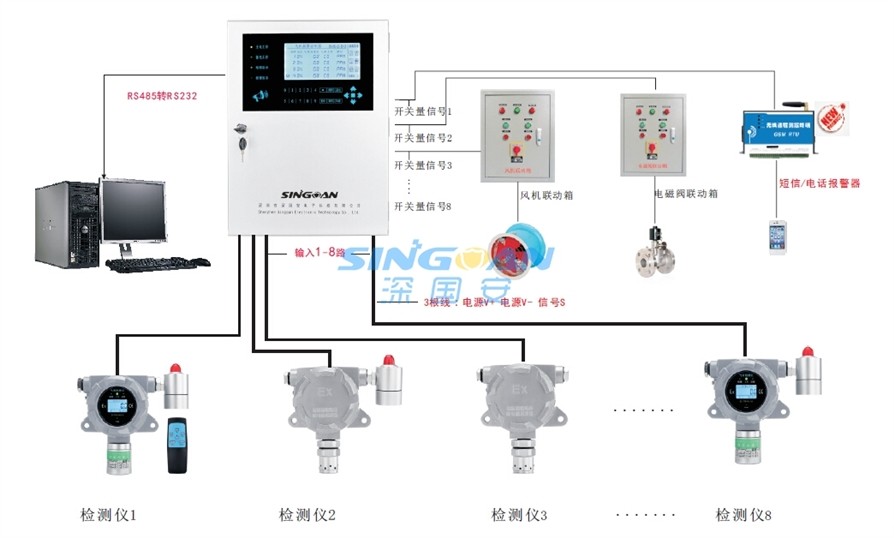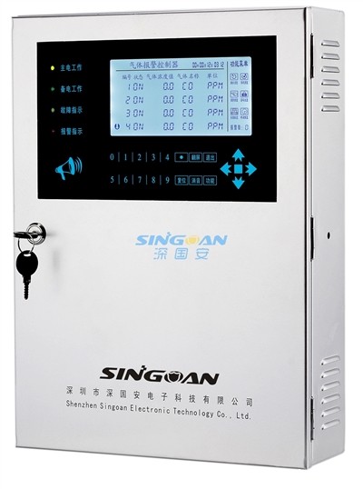 一、产品简介 SGA-800B气体报警控制器是米优app下载安装电子推出的一款分线制液晶显示型气体检测仪;最大支持8路4-20mA信号输出的气体检测仪接入;分线制控制,避免了因个别气体检测仪故障,而引起整个系统瘫痪的风险;当现场连接的任意1路气体检测仪达到预设报警点时,控制器会自动发出85分贝以上的声光报警,提醒人员安全撤离;标配8组常开常闭无源触点继电器输出,方便每路气体检测仪联动控制不同的设备。 SGA-800B气体报警控制器为本质安全型电路设计,配备防爆外箱,安全耐用;6英寸大屏幕液晶显示屏,可实时显示每路气体检测仪的编号、气体名称、检测单位、实时监测值等信息;主电、备电、报警、故障指定灯,一目了然;双重密码保护(实物钥匙1把+操作密码),确保仪器安全使用;客户可根据现场情况,自行修改高、低浓度报警点、零点校准、密码、时间等功能;支持单路或多路检测仪屏蔽功能;RS485通讯接口,可通过米优app下载安装专用监测软件,实时查看、存储各路气体检测仪的监控数据,并通过图形显现出来;还能导成EXCEL数据,进行数据再编辑、打印等。 别名: 报警控制主机、总线制报警控制器、气体报警器监控平台、气体检测仪控制柜 二、产品特点 1)本安型电路设计,配铝合金防爆外壳,坚固耐用; 2)大屏幕液晶显示屏,可实时显示气体名称、浓度值、单位值、时间值等参数; 3)24时循环监测目标气体,万无一失; 4)可任意接收1-8组不同厂家的4-20mA信号输出的气体检测仪; 5)主电、备电、报警、故障、通讯、输出等指示灯一应俱全、简单明了; 6)自带8组继电器开关量信号,可同时与多组电磁阀、风机等进行联动; 7)客户可通过系统自由调置气体检测仪的零点、高低段报警等功能; 8)双重密码设置,保障系统安全运行; 9)壁挂式设计,只需固定式附件支架,即可牢稳固,简单方便; 10)可通过预设RS485接口,用米优app下载安装专用软件读取并下载监测数据(选配); 11)气体现场泄漏时,可自动电话或短信报警提示(选配)。 12)大容量外置备电,即使突发断电,也安全无忧(选配) 线 制 分线制(3芯线) 工作电压 AC220V/50HZ 支持路数 最大8路 额定功率 <15W 安装方式 壁挂式 响应时间 <30S 通讯方式 4-20mA 报警方式 声光报警 工作温度 -10℃~+40℃ 监控软件 有(选配) 工作湿度 15%~95%RH 备 电 有(选配) 继 电 器 8组(AC 220V/7A) 尺 寸 420×310×100mm 传输距离 500M 重 量 6KG 设计寿命 5-10年 固定方式 支架安装 测量范围 00.000-99999 量程单位 %LEL、100%VOL、PPM可选 报警设定 根据气体类型和测量范围设定 设计标准 GB3836.1-2000《爆炸性气体环境用电气设备通用要求》 GB3836.4-2000《爆炸性气体环境用电气设备本质安全型“Ⅰ”》 GB15322.1-2003《可燃气体探测器技术要求和试验方法》 GB16808-2008《可燃气体报警控制器》 执行标准 GB3836.1-2010《爆炸性气体环境用电气设备 第一部分:通用要求》 GB3836.2-2010《爆炸性气体环境用电气设备 第二部分:隔爆型“d” 》 Q/SGA 01-2014《米优app下载安装电子科技有限公司企业执行标准》 附 件 固定支架、钥匙、包装盒、说明书、合格证、出货单、各一份 四、应用场所 气体监控车间、安保室、监控室、办公室、廊道等 五、产品导购 米优app下载安装另有1路、2路、10路、18路、48路、99、199路气体报警控制器可选,详细请咨询米优app下载安装销售人员! 更详细产品介绍,请找登录:m.kbdas.com 查询 安装示意图 监测软件登录界面 查询历史数据