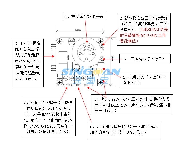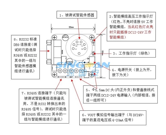 SGA-ZHB-1单组信号转换板设计小巧,使用方便;可单独使用,也可装入设备中安装使用;产品采用高稳定、超低电源纹波的稳压开关;电源输入、RS85通讯及模拟输出均配有短路、防反接等保护功能。具有安全可靠、简单易用、扩展性强等特点。